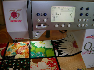 Por cierto, el bies lo cosí por un lado normal, pero por el otro con la puntada 7 de la Bernina Aurora, la de las 5 puntadas largas, una en zigzag. Siempre con cuidado de coser primero con la parte negra arriba, y cerrar con la parte colorida arriba. Se esa forma no se ven las puntadas.